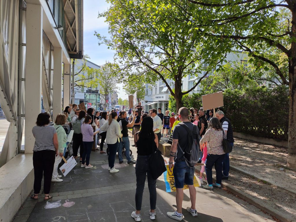 Wir haben uns an den Gesamtelternbeirat gewandt, der seiner Aussage nach mit dem Träger in engem Austausch steht. Er sieht sich in einer beratenden moderierenden Rolle. Zudem haben wir dem Oberbürgermeister einen Brief geschrieben. Zurück kam eine E-Mail. Wir haben die erste Demo organisiert.