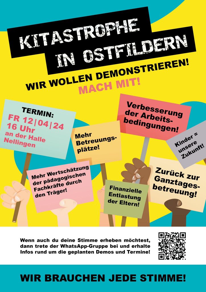 Insgesamt war die “Kitastrophe in Ostfildern” Demonstration ein eindrucksvolles Zeichen für die Dringlichkeit der Situation und die Entschlossenheit der Gemeinschaft, sich für eine bessere Betreuung und Bildung unserer Kinder einzusetzen. Wir hoffen nun auf weiteren Dialog und konkrete Maßnahmen seitens der Stadtverwaltung und des Trägers, um unseren Forderungen gerecht zu werden, vorgeschlagene Lösungen aufzugreifen und eine nachhaltige Verbesserung herbeizuführen.